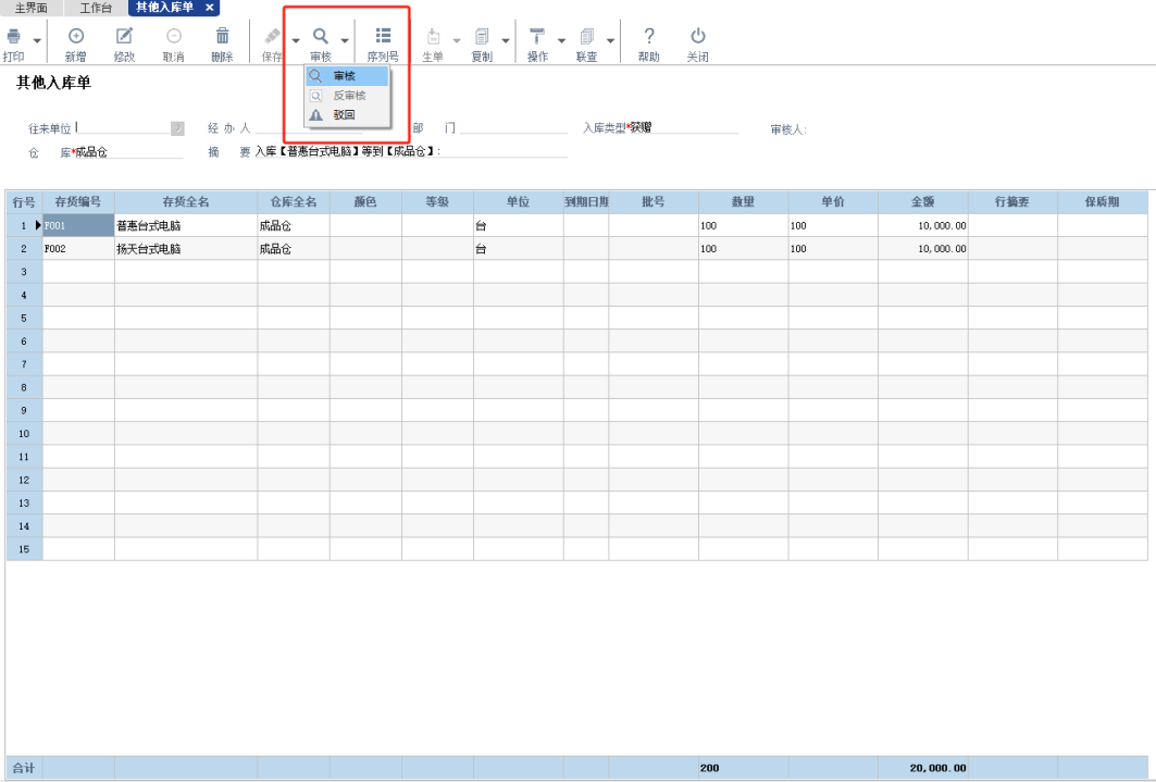 3. 驳回:否决单据,系统自动将其退回到未审核状态,等待修改与重新提交。