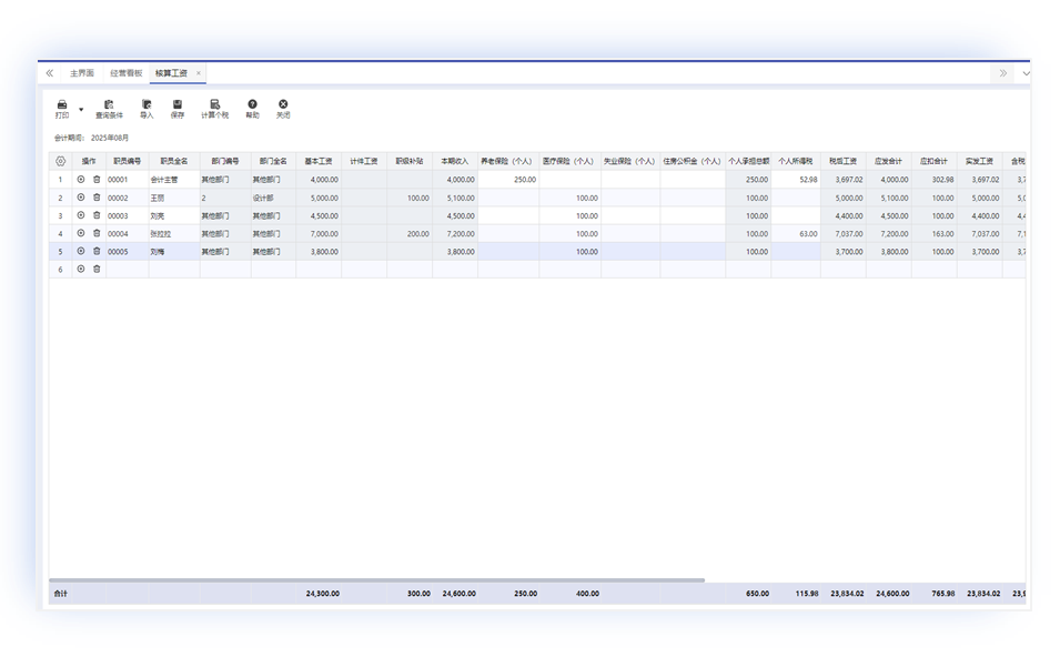 l 增加工资表查询,可查看各月核算、分配、结算情况,掌握整体进度。